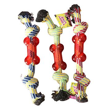 JUGUETE DE CUERDA CON HUESO DE HULE VARIOS COLORES PUPPY LOVE